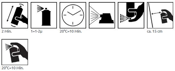 1 leichter Spritzgang, Lufttrocknung 10 min (20°C), Überlackierbar nach 10 min (20°C), Untergrund mit ColorMatic Kunststoffreiniger antistatisch, Art.Nr. 174469, gründlich vorreinigen